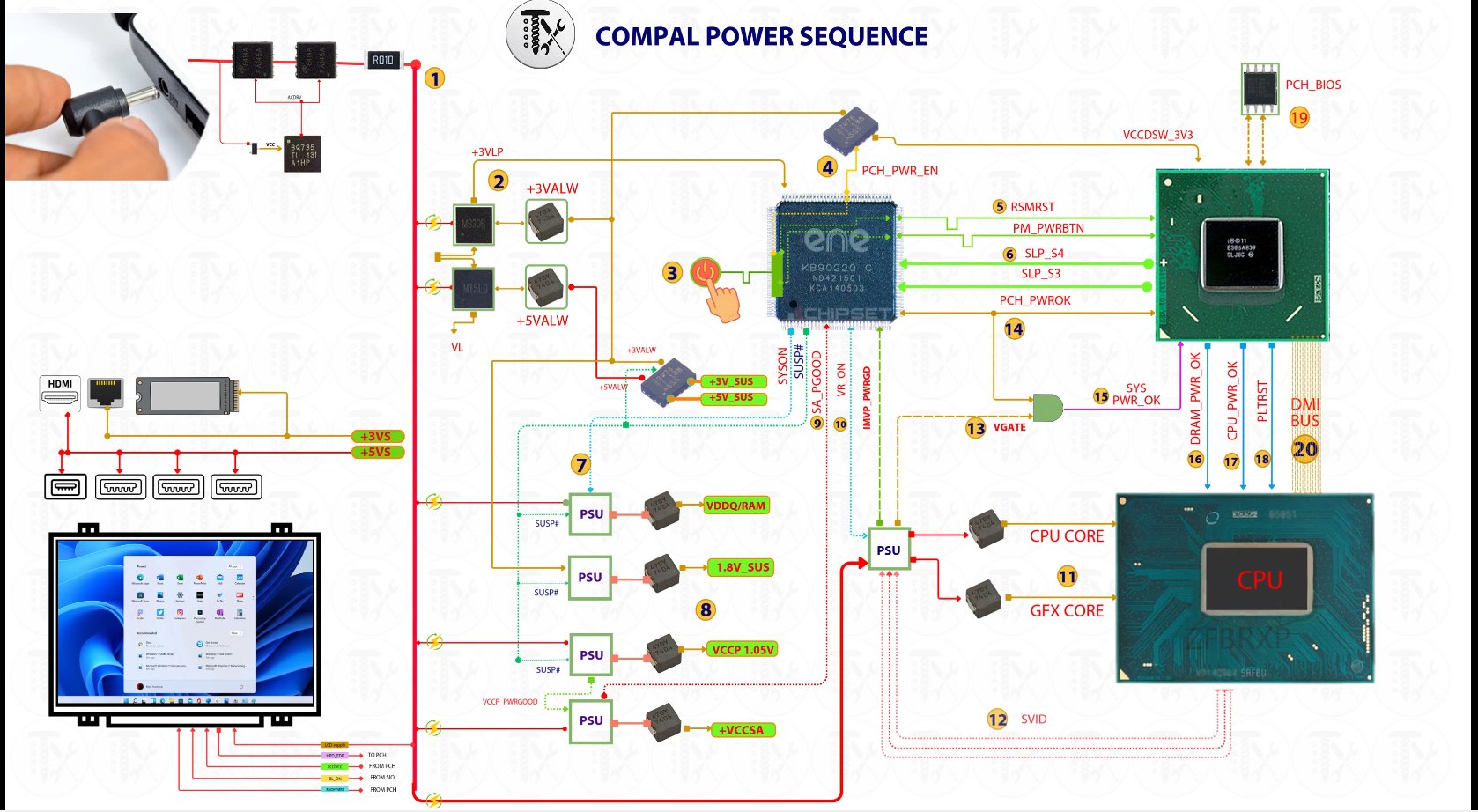 LAPTOP REPAIR WORKFLOW🔧 Common Quanta Motherboard Repair Workflow 1. Initial Checks 2. Power Rail Sequencing Quanta boards follow Intel/AMD standard sequencing: 👉 Use a multimeter to confirm…